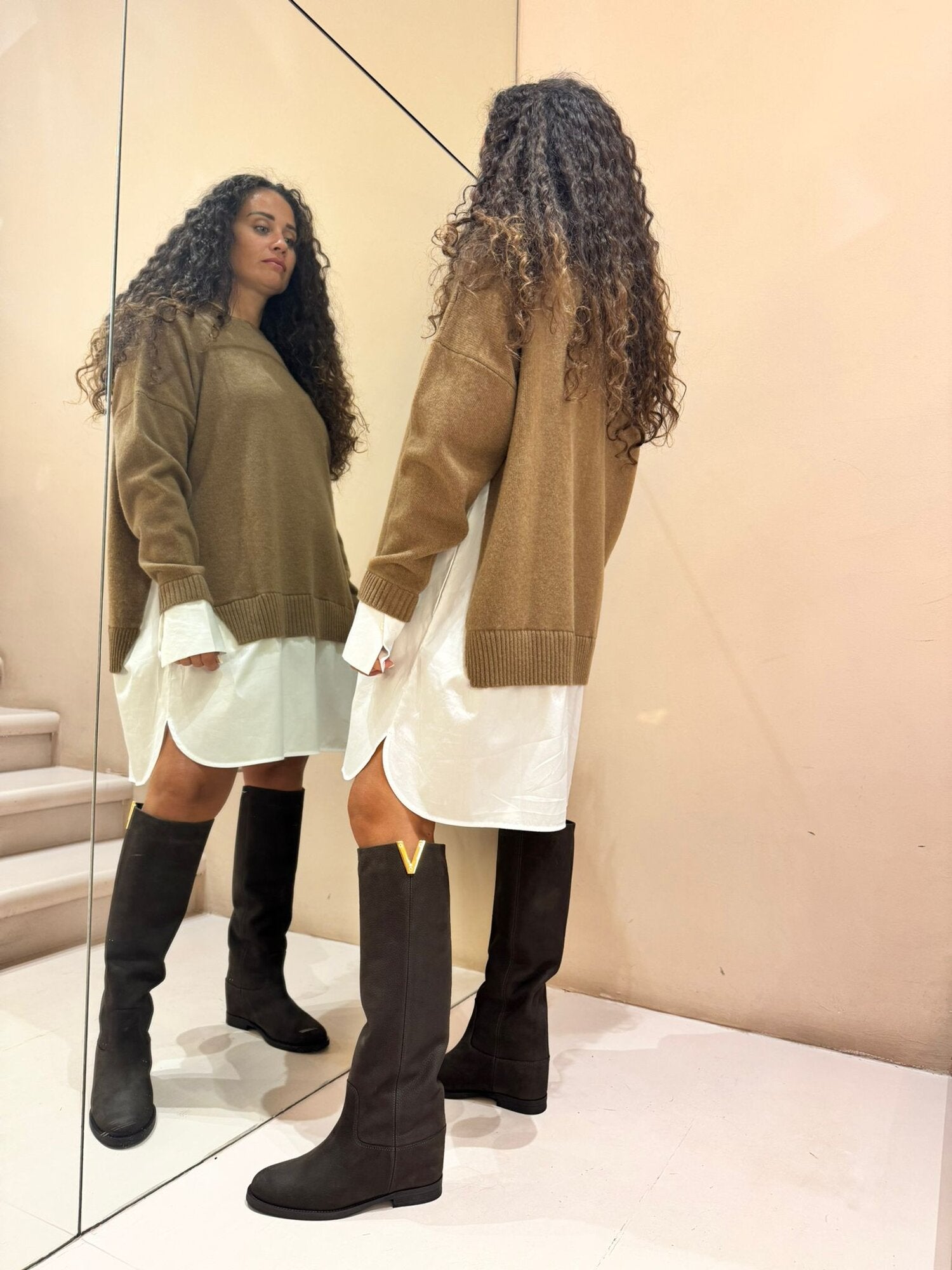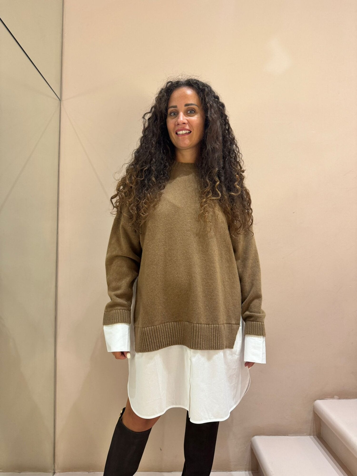 ABITO IN LANA CON DETTAGLI CAMICIA IN COTONE SULLA PARTE FINALE