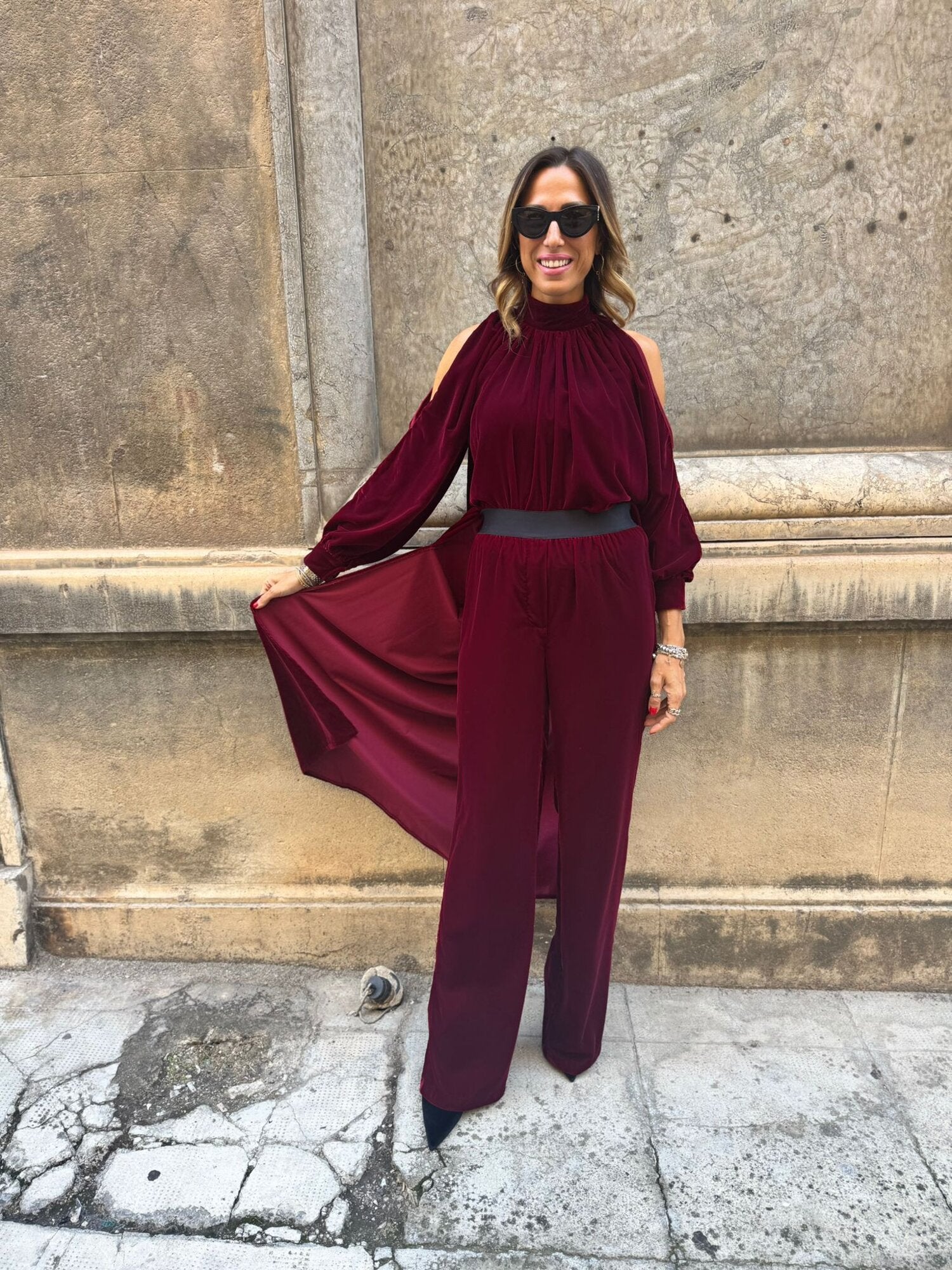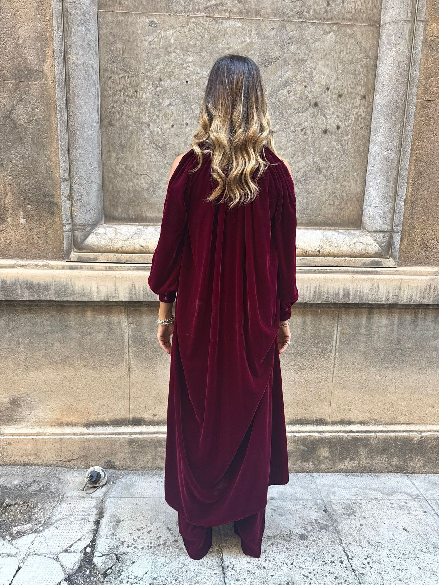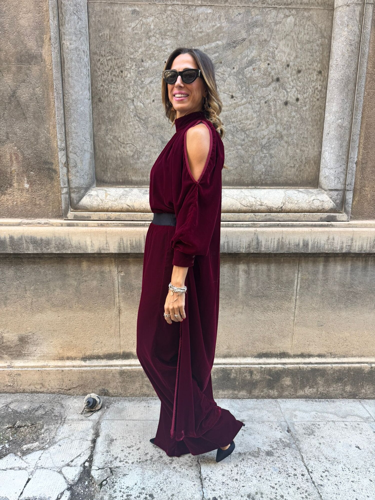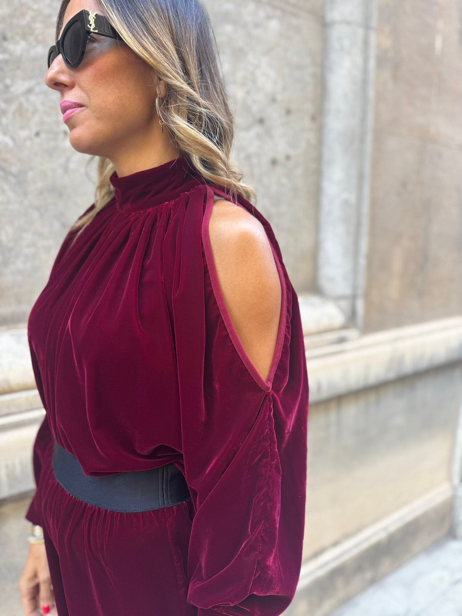 Blouson in velluto corto davanti lungo dietro taglio cut out sulle spalle per un look wow!