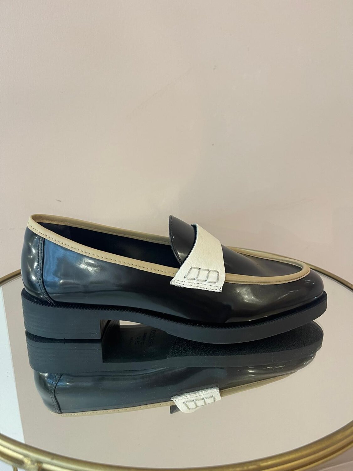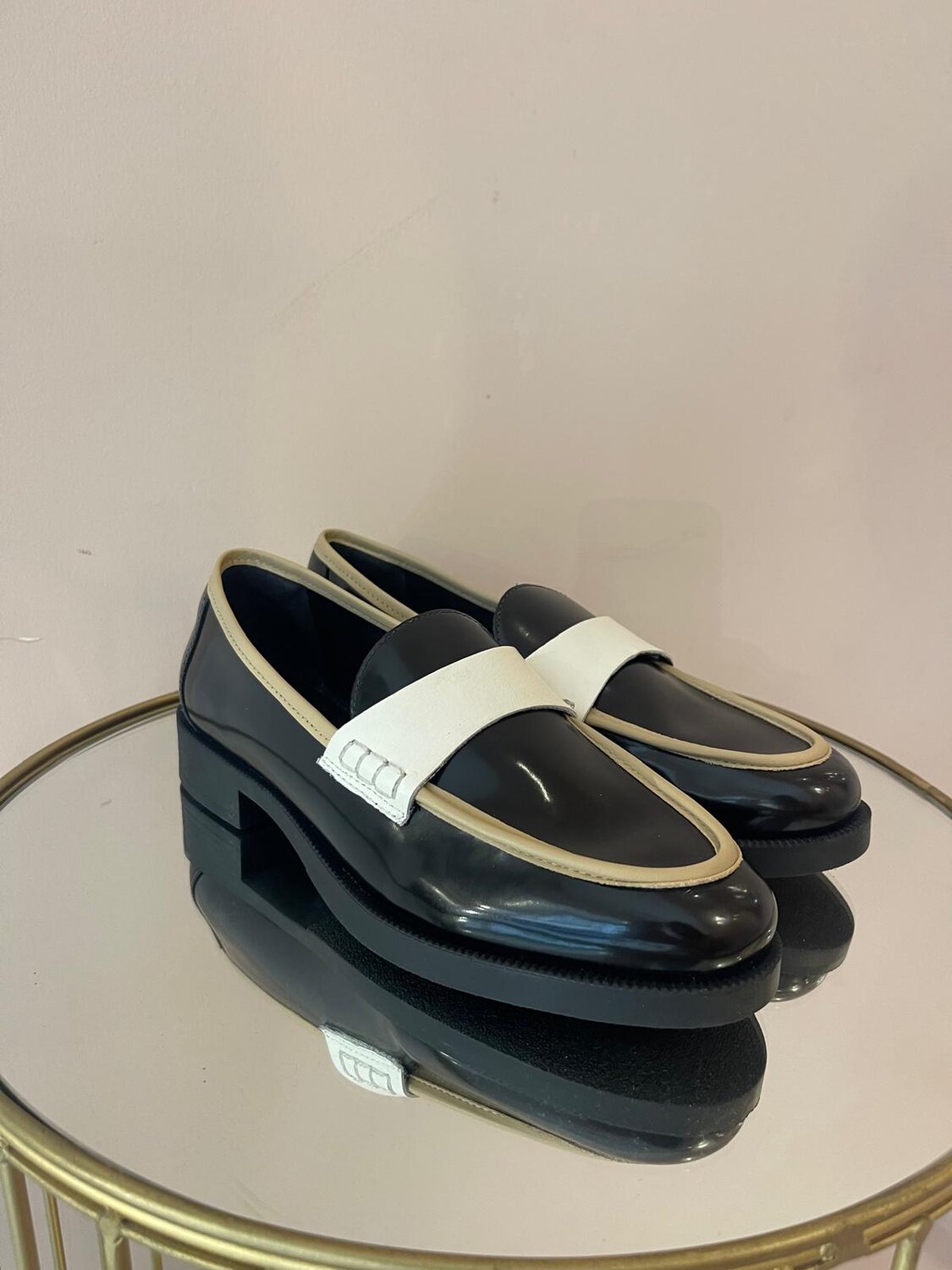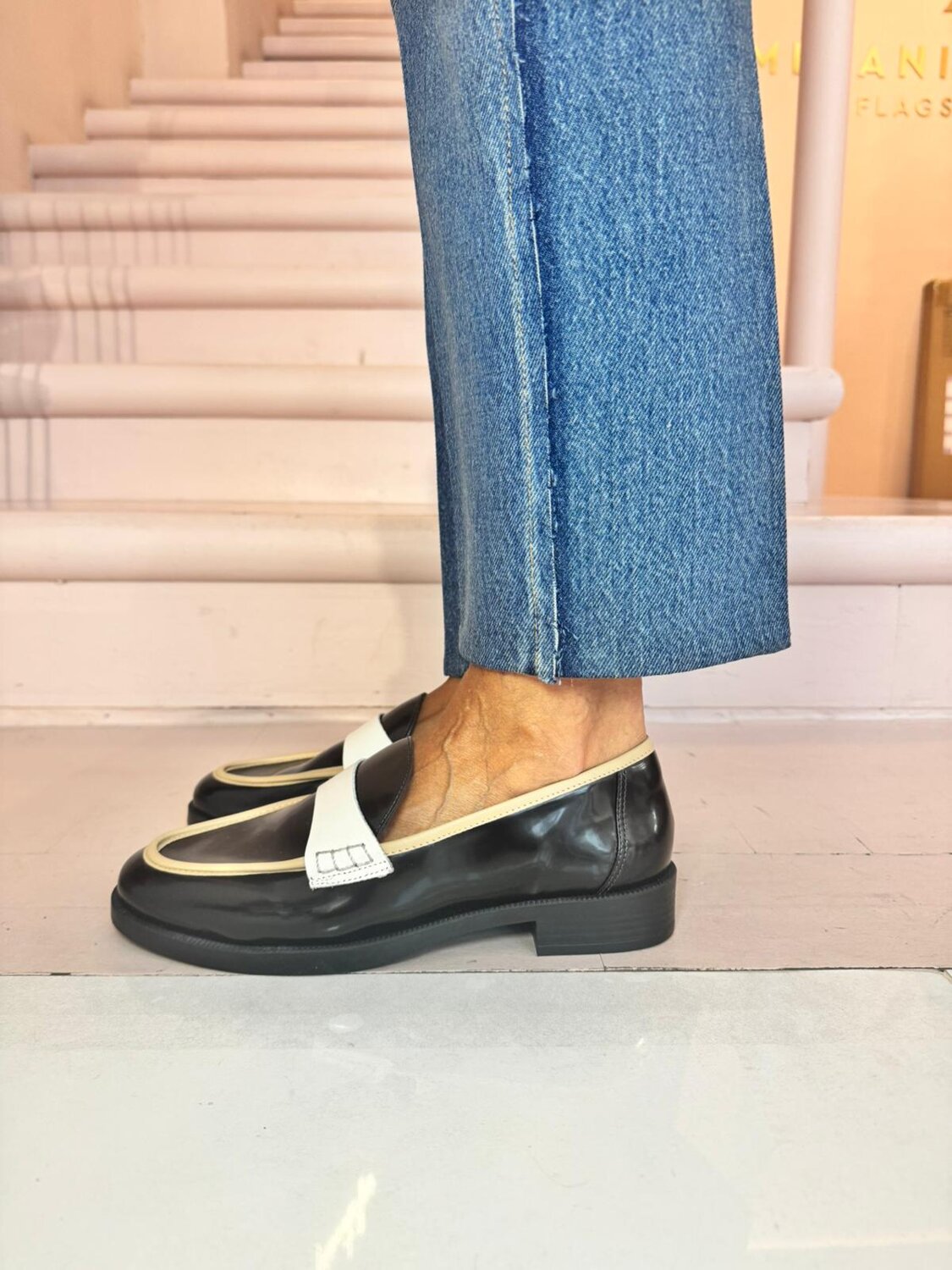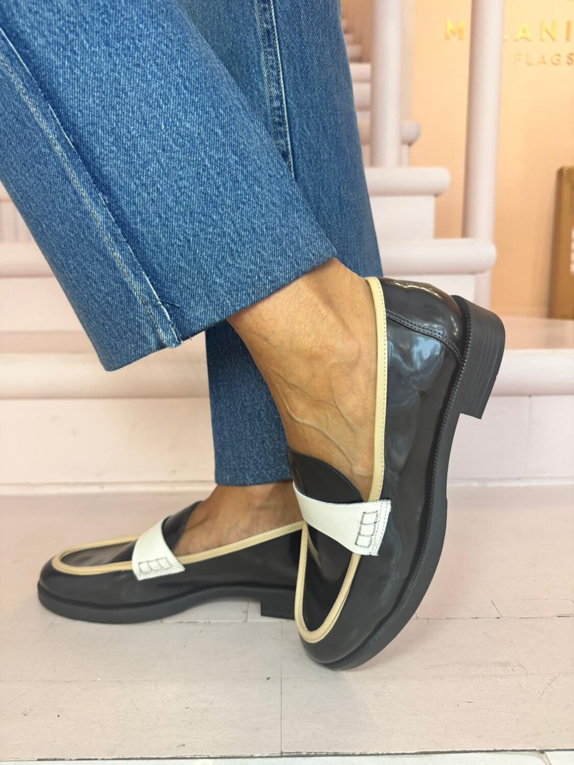 MOCASSINO IN PELLE ABRASIVATA CON PROFILO E GUARDOLO PANNA E BEIGE A CONTRASTO