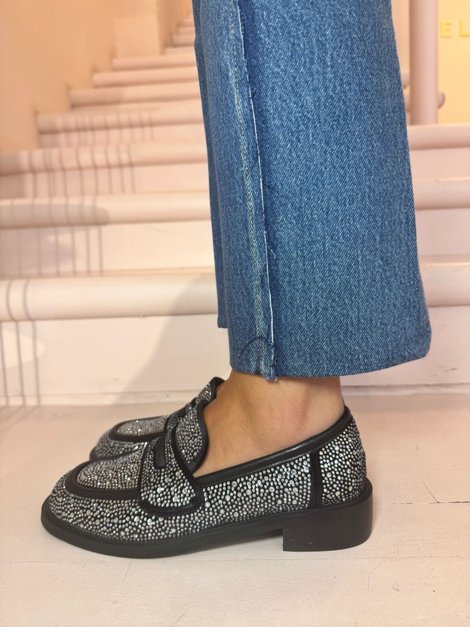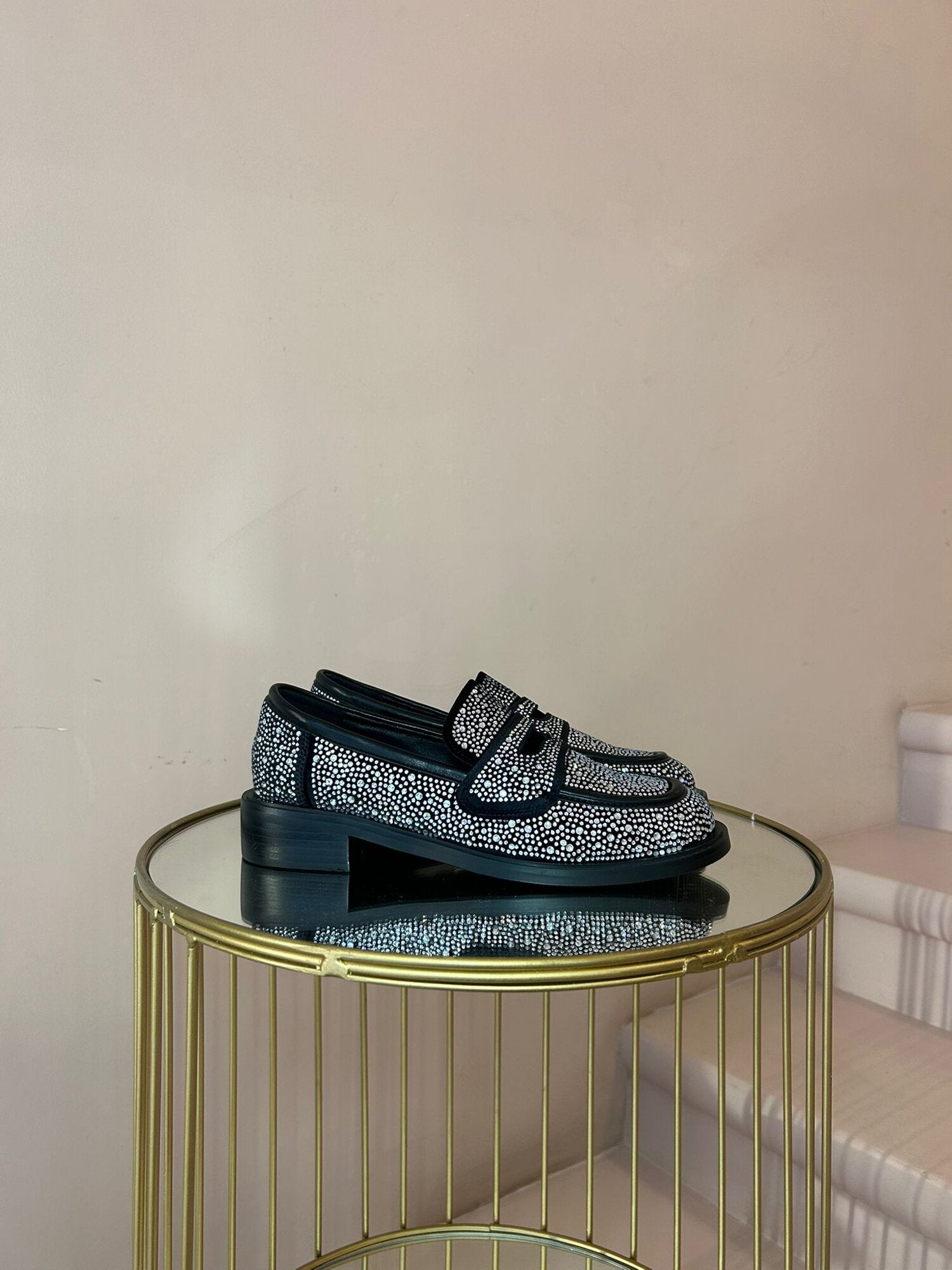 Mocassino gioiello strass tacco 4cm