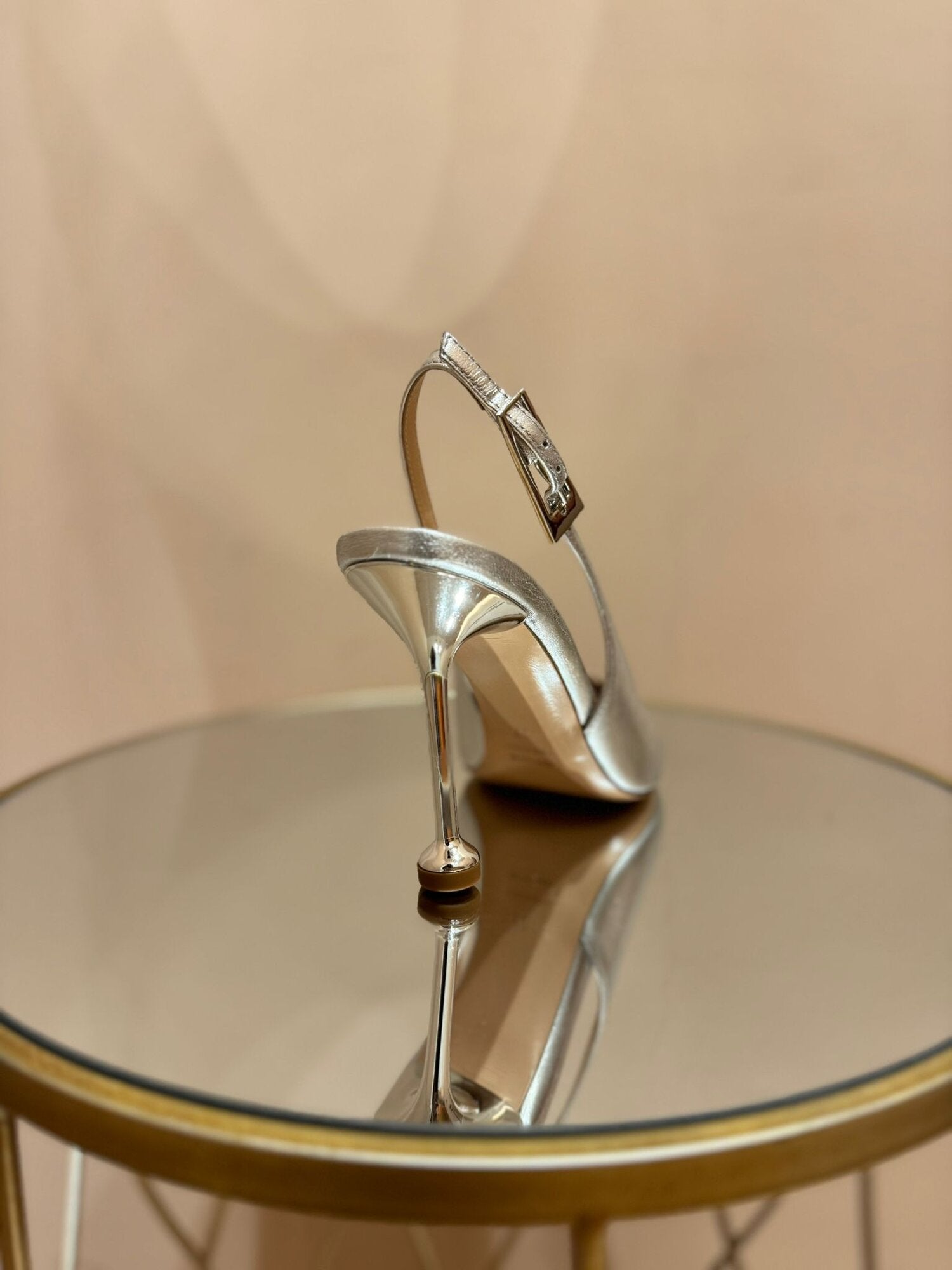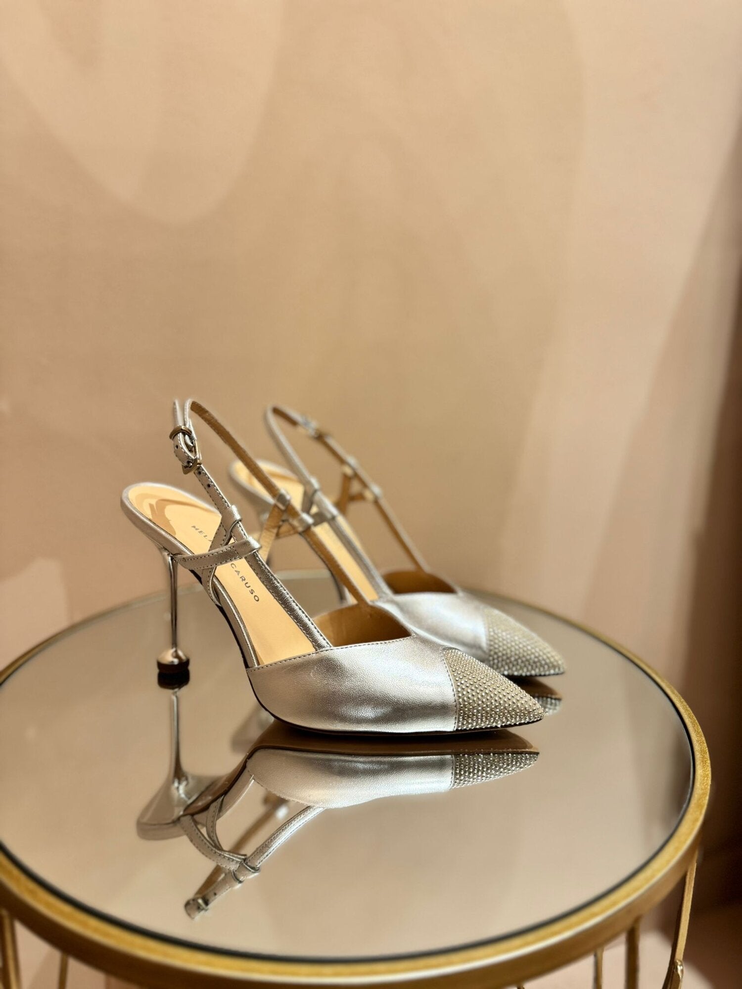 Sling back scollo cuore un vera pelle made in italy dettalio punta gioiello micro strass a caldo tacco 110 dettaglio tondo sulla base
