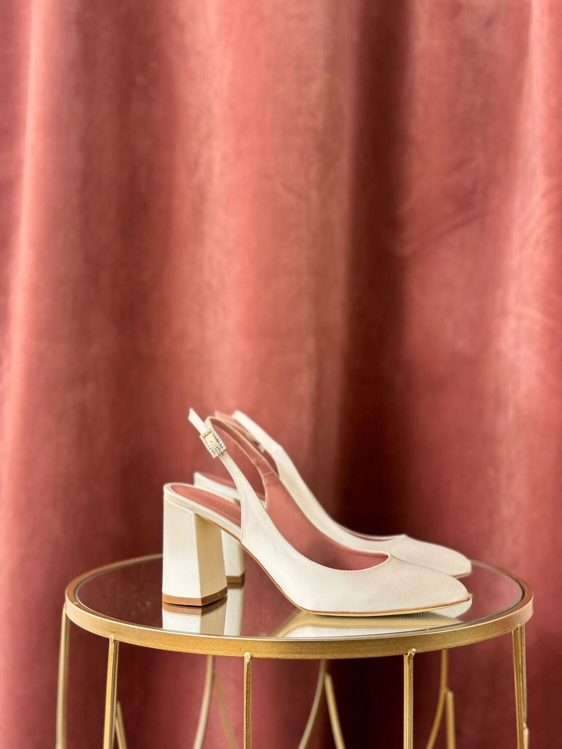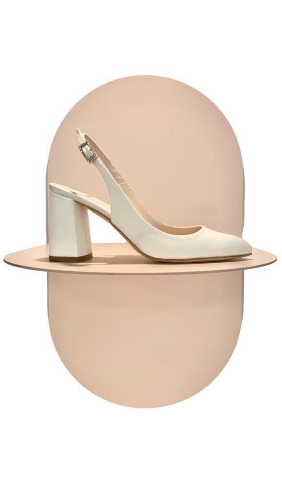 Chanel in raso di seta, foderato in pelle, tacco grosso, fondo cuoio e lavorazione artgianale.