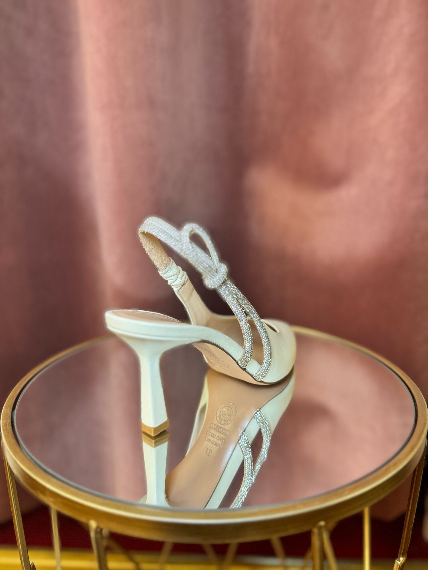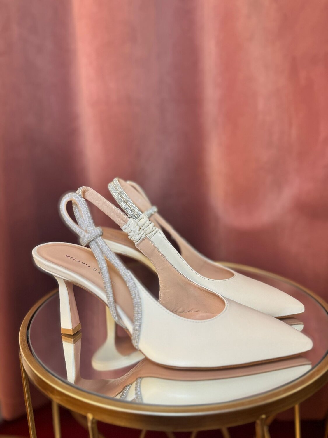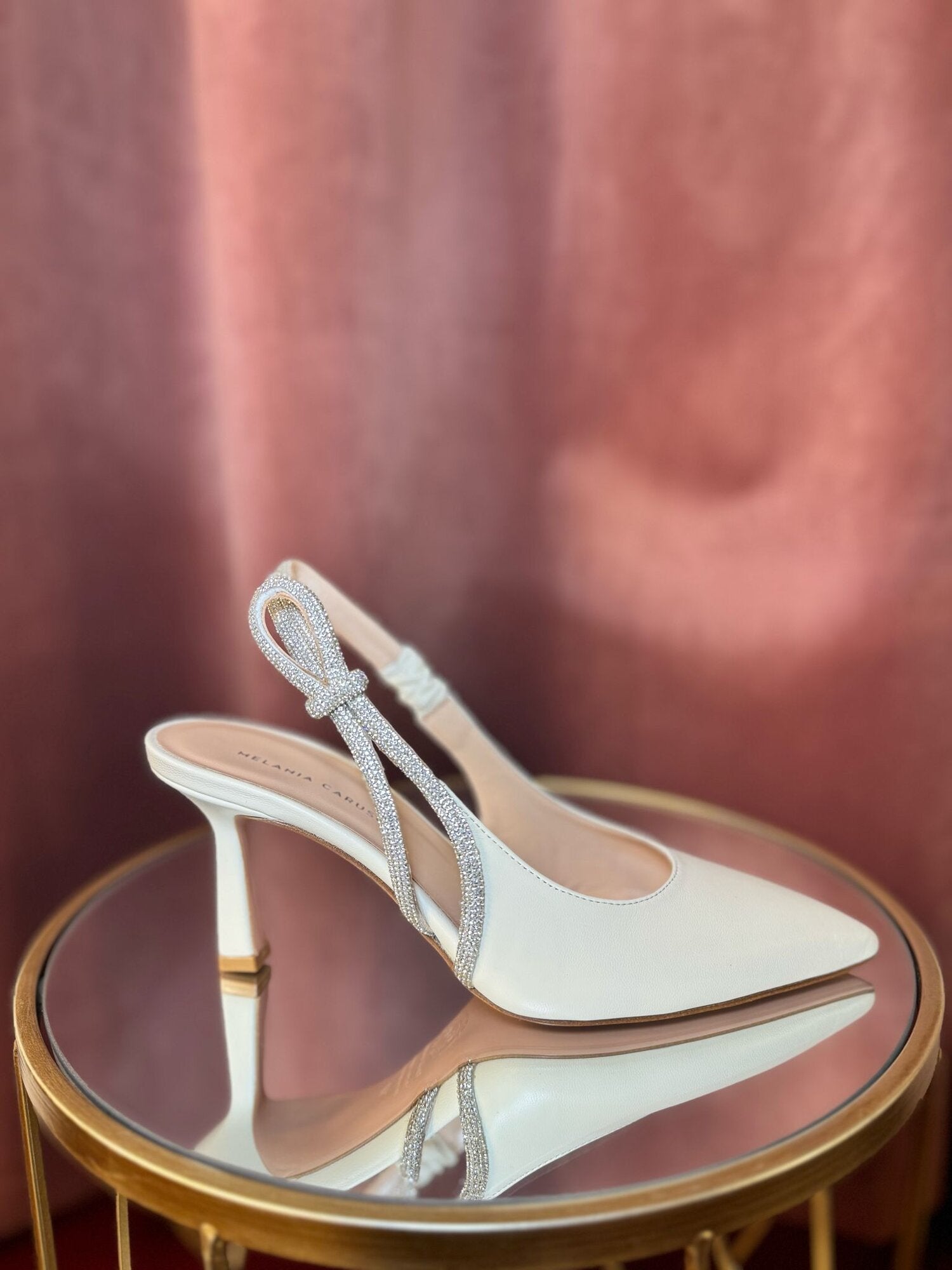 Sling back in vera pelle con dettagli in micro swarovski sul tallone scollo a cuore e tacco a svasare